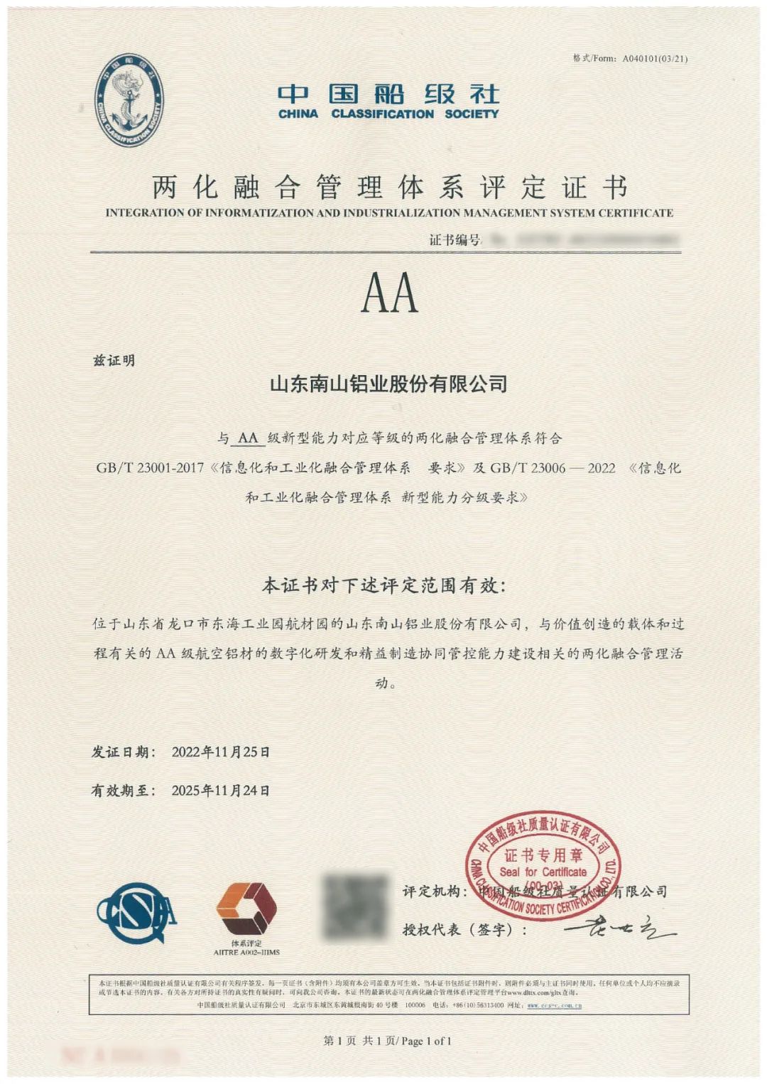 近日,山東南山鋁業(yè)股份有限公司完成兩化融合管理體系由“A”升級至“AA”級認證,促進了南山鋁業(yè)從傳統(tǒng)企業(yè)轉(zhuǎn)型升級,加快了戰(zhàn)略目標落地,在彰顯南山鋁業(yè)綜合實力的同時,也推動了企業(yè)品牌影響力的傳播。
