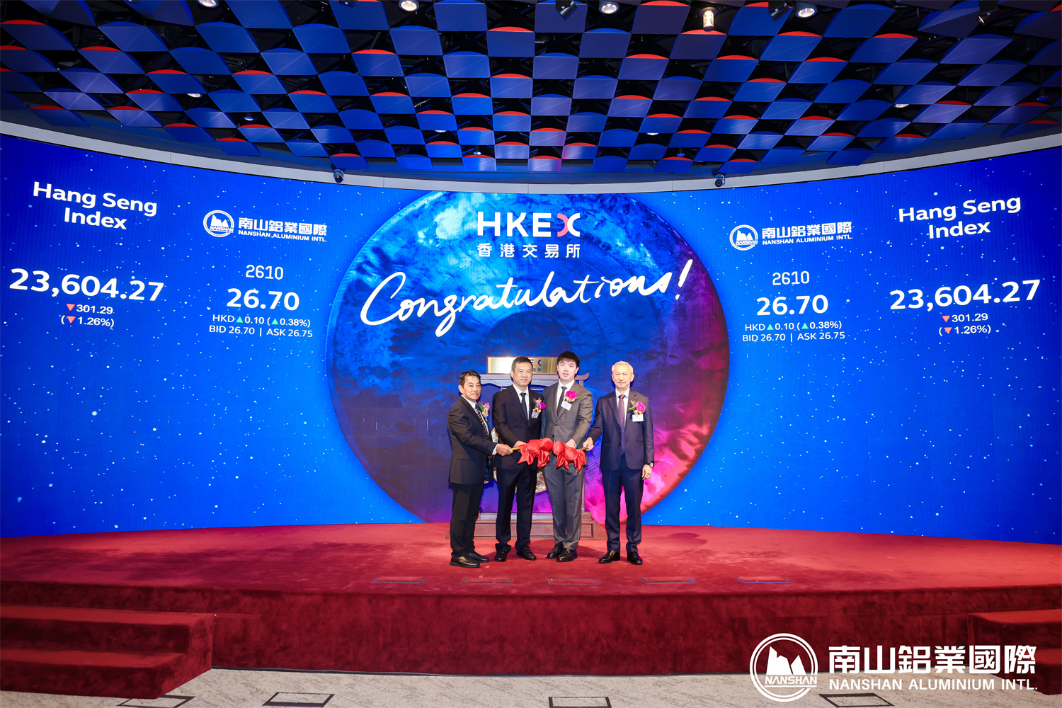 南山鋁業(yè)(600219.SH)旗下子公司南山鋁業(yè)國(guó)際控股有限公司(02610.HK)迎來(lái)重大時(shí)刻,公司正式在香港聯(lián)合交易所有限公司主板掛牌上市。