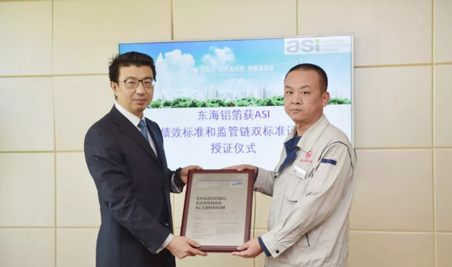 近日,煙臺東海鋁箔有限公司ASI績效標準和監(jiān)管鏈雙標準認證證書的授證儀式在鋁箔公司隆重舉行,煙臺東海鋁箔有限公司成為中國首家獲得ASI雙標準認證的公司。
