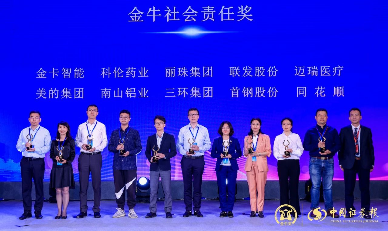 第22屆金牛獎,100家上市公司獲評金牛最具投資價值獎;40位公司高管獲評金牛企業領袖獎。此外,還揭曉了99個金牛董秘獎,31個金牛社會責任獎,100個金牛投資者關系獎。在本次頒獎典禮上,南山鋁業喜獲雙項大獎,南山鋁業獲得“金牛社會責任獎”,南山鋁業總經理呂正風榮獲“金牛企業領袖獎”。