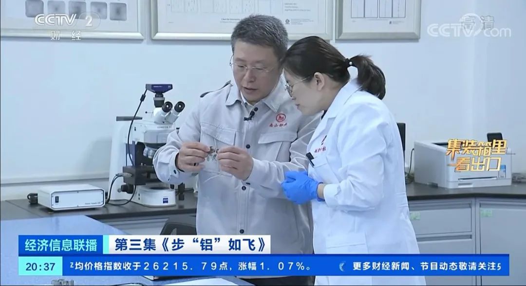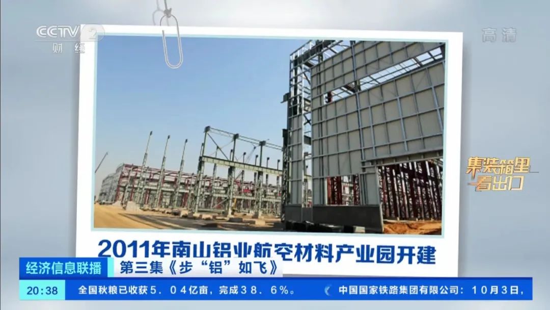 10月3日晚,央視CCTV2財經頻道《經濟信息聯播》欄目推出的喜迎二十大“集裝箱里看出口”特別報道,深度聚焦報道中國鋁加工行業產品出口情況。南山鋁業作為行業龍頭企業代表被權威報道。讓我們跟隨記者的鏡頭以全方位的視角再次感受南山鋁業的強勁發展實力和行業領跑地位。