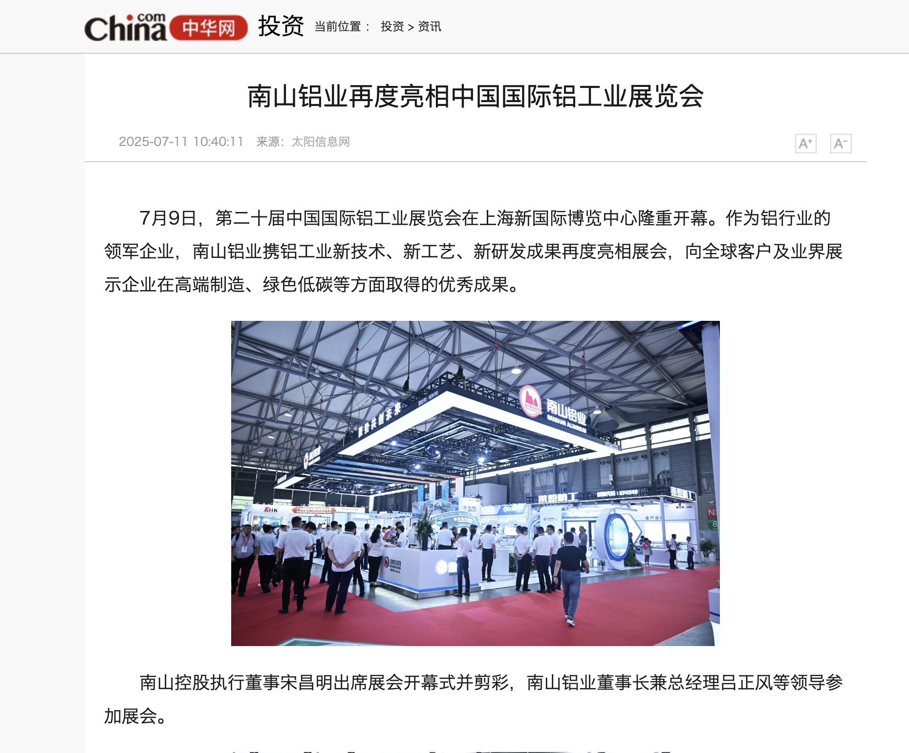 中華網:南山鋁業再度亮相中國國際鋁工業展覽會