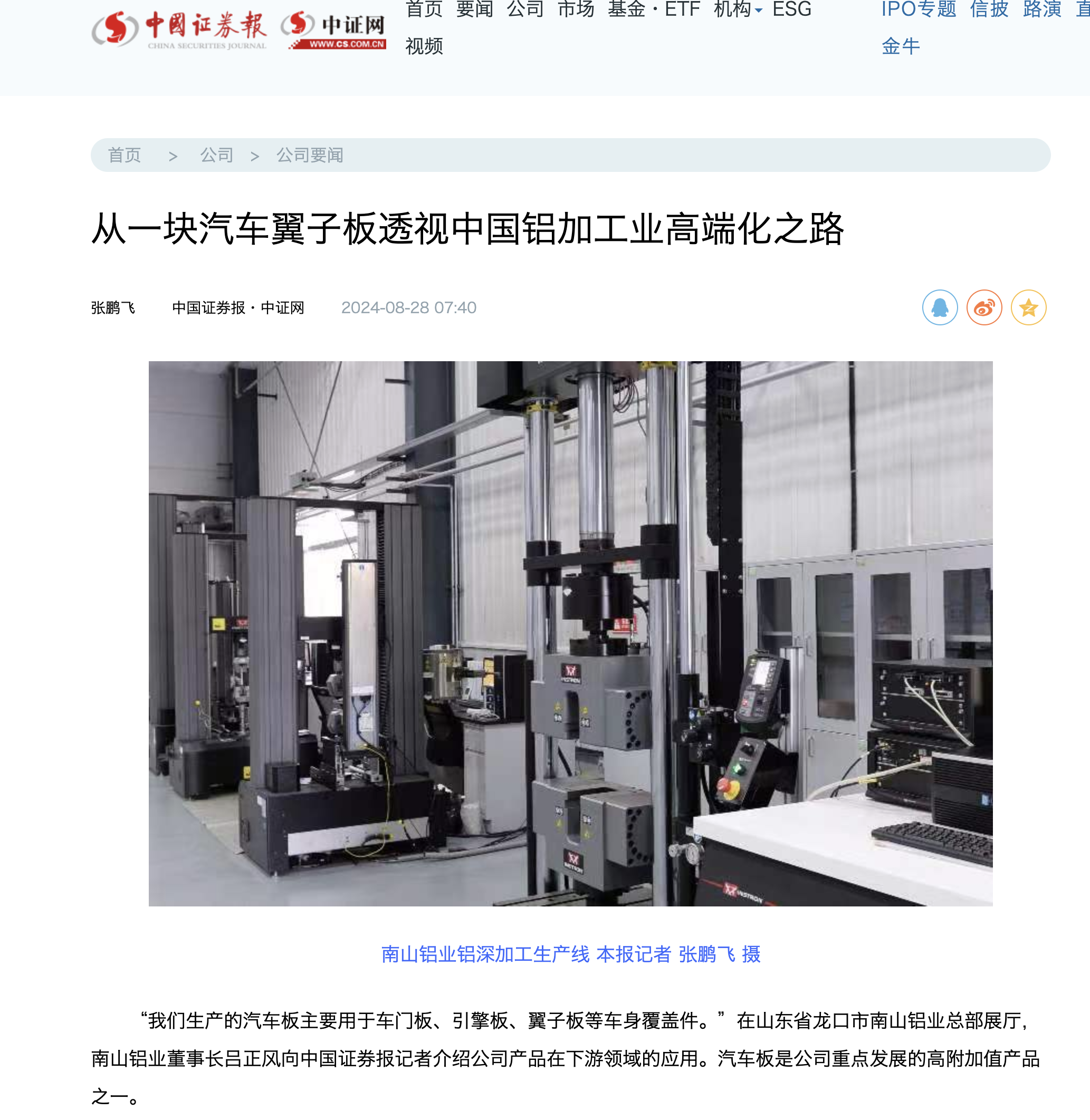 中國(guó)證券報(bào):從一塊汽車翼子板透視中國(guó)鋁加工業(yè)高端化之路